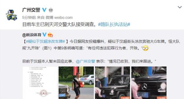 而于汉超前几天被恒发发文开除一事缘由也是有网友举报于汉超在街头涂改自己奔驰大G的车牌号,于汉超也一直没有做过任何解释,后被开除并处以罚款和行证拘留15日以及驾照扣除12分。
