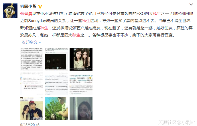 张碧晨在红了之后,黑料不断的被曝光,有网友指出张碧晨曾经是韩国某女子组合的成员,而她到韩国正是为了追星,张碧晨更是EXO的四大私生饭之一。张碧晨是张艺兴的私生饭,她还在微博发过张艺兴是她男朋友,现在该微博被删除了。