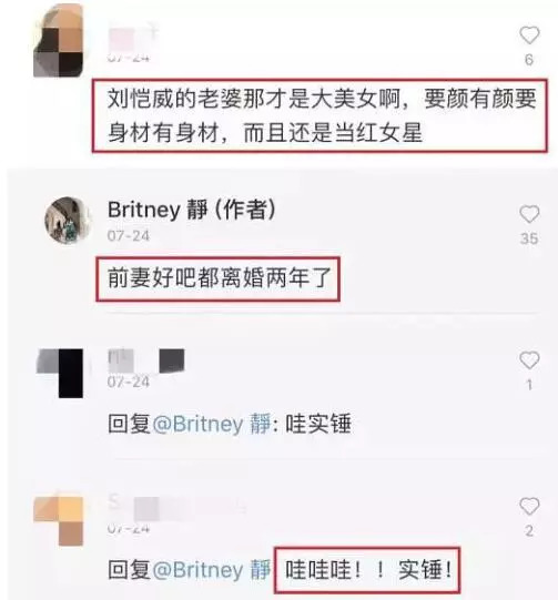 下面还有人说合照里刘恺威拍得像蜡像,她还回复说可能那天去探班,刘恺威在拍年代戏,是妆容的问题。