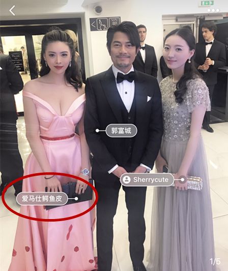 跟郭富城合照,还特地给自己的包包打个标签:爱马仕鳄鱼皮。