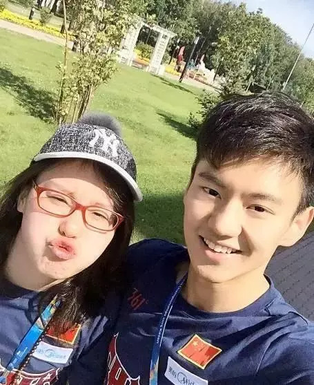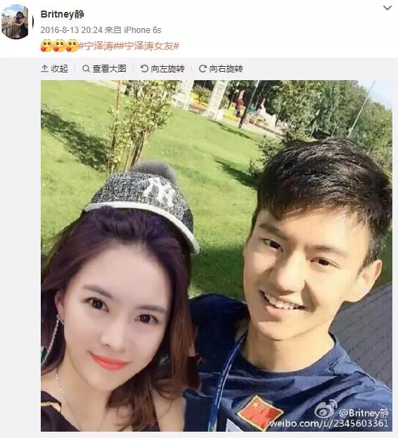 某段时间大概是迷上了宁泽涛,于是自己P了一张跟宁泽涛的合影,还加了话题“宁泽涛女友”↓