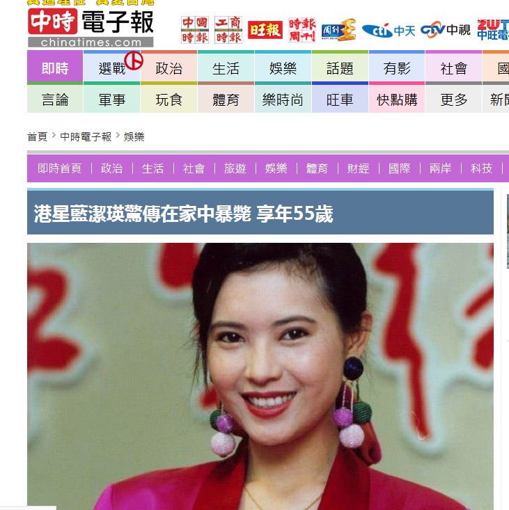 《大时代》剧照台湾《中国时报》刚刚也报道了蓝洁瑛“惊传暴毙”。报道说,蓝洁瑛早年获得电视台力捧出道,因外形出众,有“香港五美之首”美誉。传梁朝伟、周星驰、黎明等男星都曾追求过蓝洁瑛,不料竟被2位影坛大哥性侵,导致精神受创,演艺事业从此一蹶不振。日前更被港媒拍到她独自在街头抽烟。