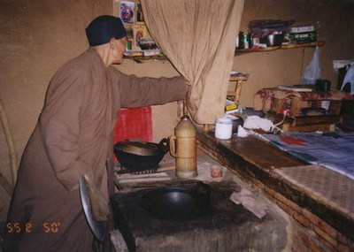 圆智师父刚来时,这个茅蓬几近废弃,四面走风,鸟从天窗进出,房子里什么都没有。经过辛苦修葺,才真正安顿下来。